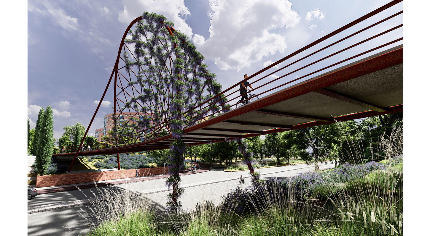 La Pasarela del "Pirulí" es una pasarela peatonal y ciclista, cuyo objetivo es enlazar la calle Alcalde Sainz de Baranda con la calle O´Donnell, de tal forma que se establece una ruta verde que conectaría el parque del Retiro con el parque de la Quinta Fuente del Berro, y a través de la "Avenida forestal" crear una infraestructura verde continua que enlaza con los parques de la Elipa y la cuña verde de O´Donnell. El diseño de la pasarela se inspira en los fractales que crean las flores de multitud de plantas como por ejemplo la Daucus carota. Esta pasarela se convierte en un hito o puerta de entrada a la Avenida forestal. Se plantea que sirva de estructura para el crecimiento de glicinias que aporten sombra y color.